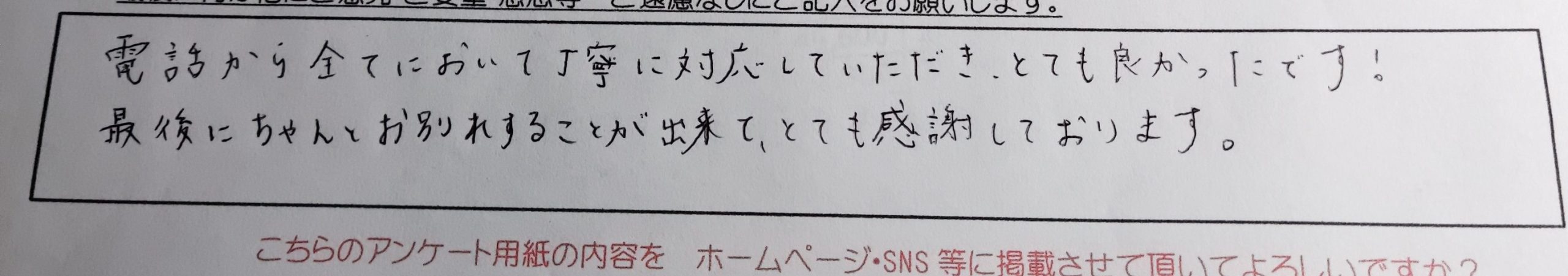電話から全てにおいて丁寧に対応していただき、とても良かったです! 最後にちゃんとお別れすることが出来て、とても感謝しております。