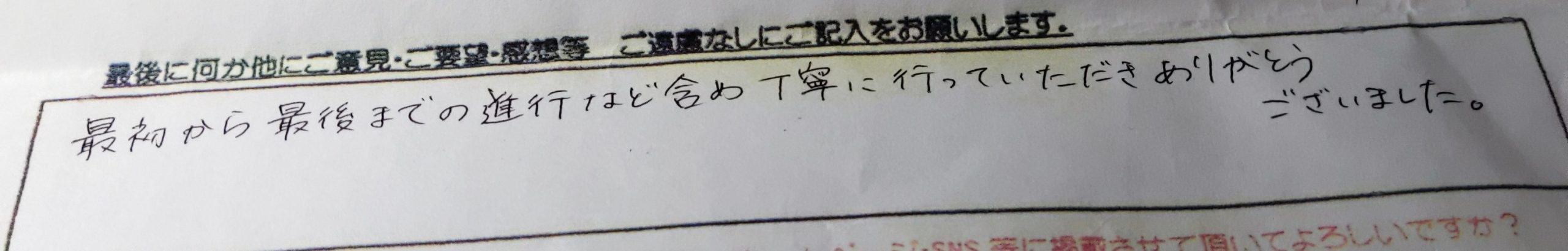 最初から最後までの進行など含め丁寧に行っていただきありがとうございました。