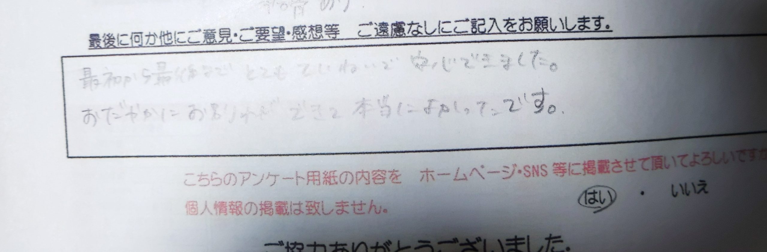 急だったにもかかわらず ていねいな対応をして頂いて感謝しています。