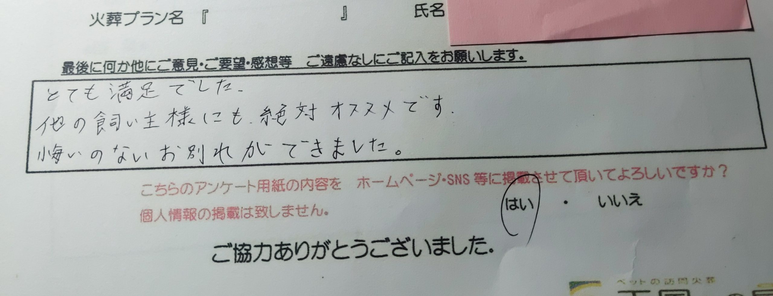 とても満足でした 他の飼い主様にも、絶対オススメです。 悔いのないお別れができました。
