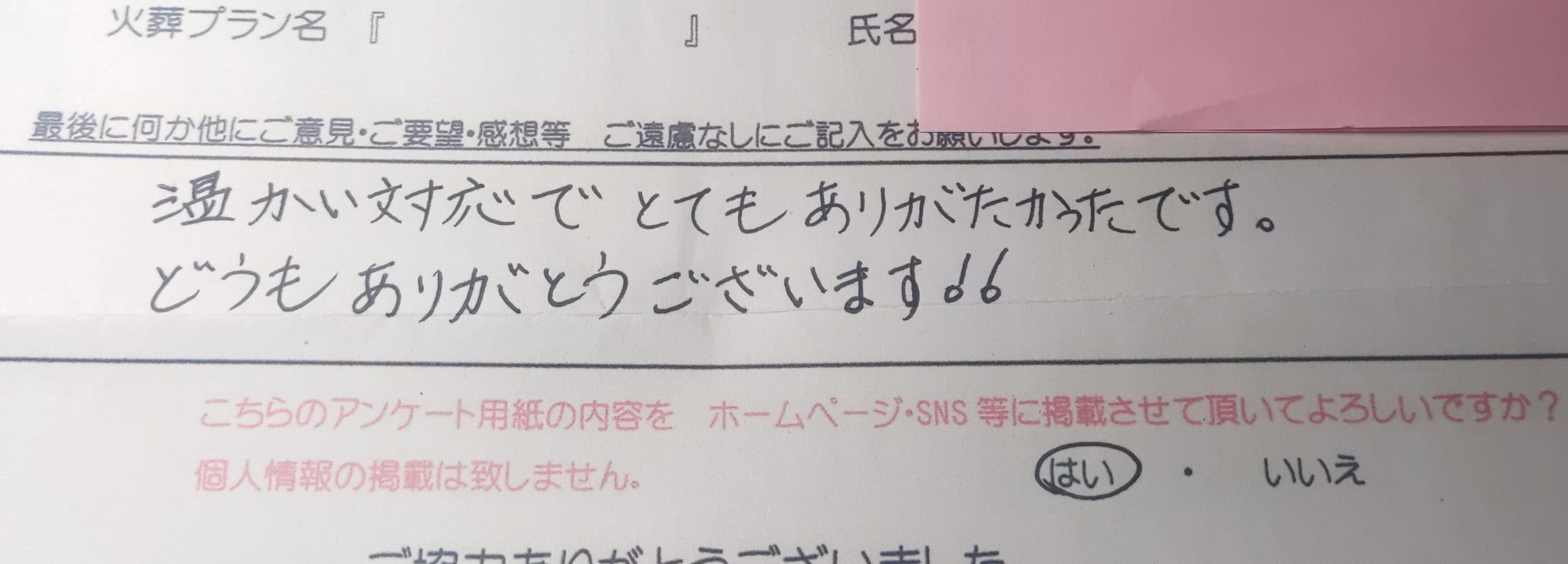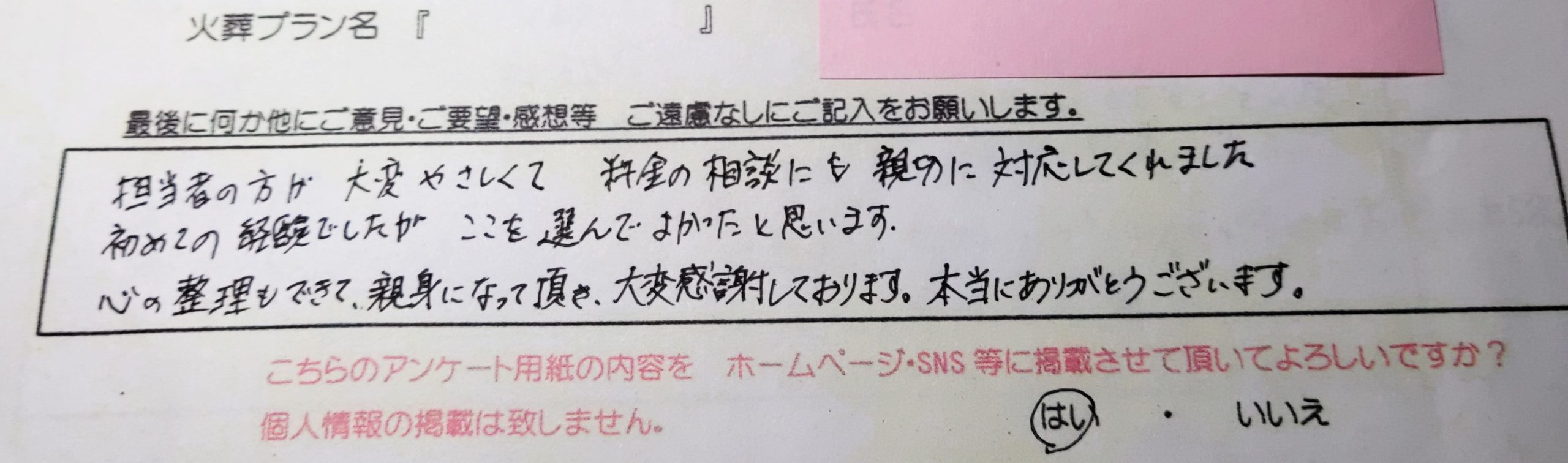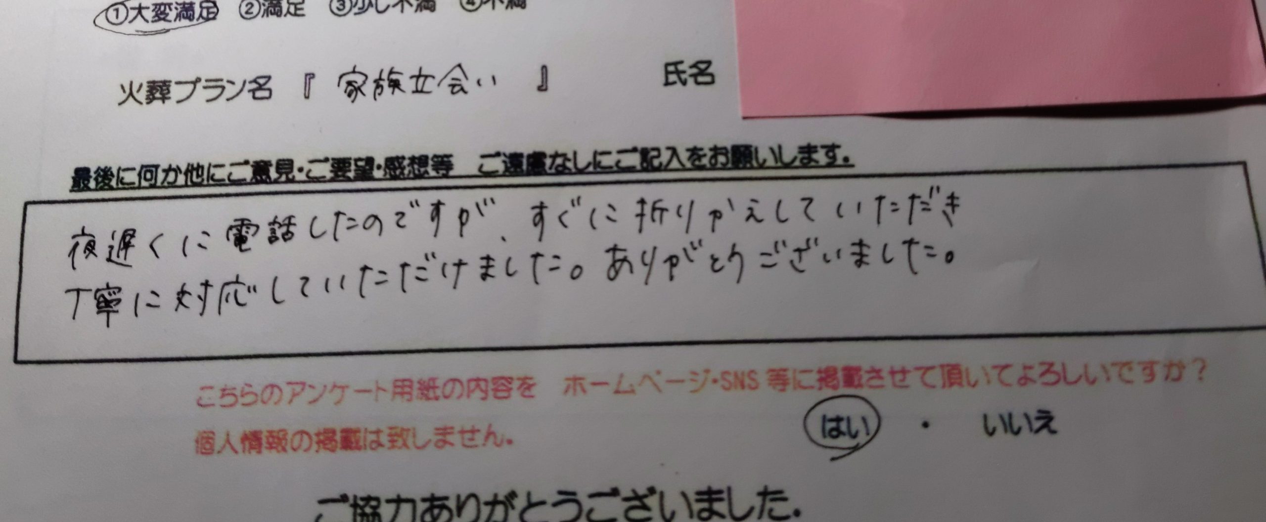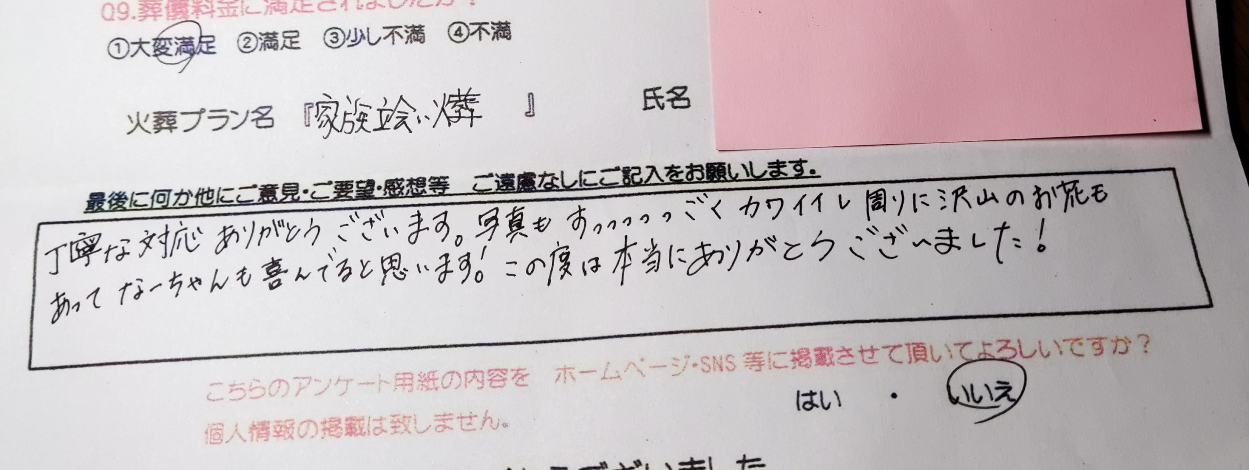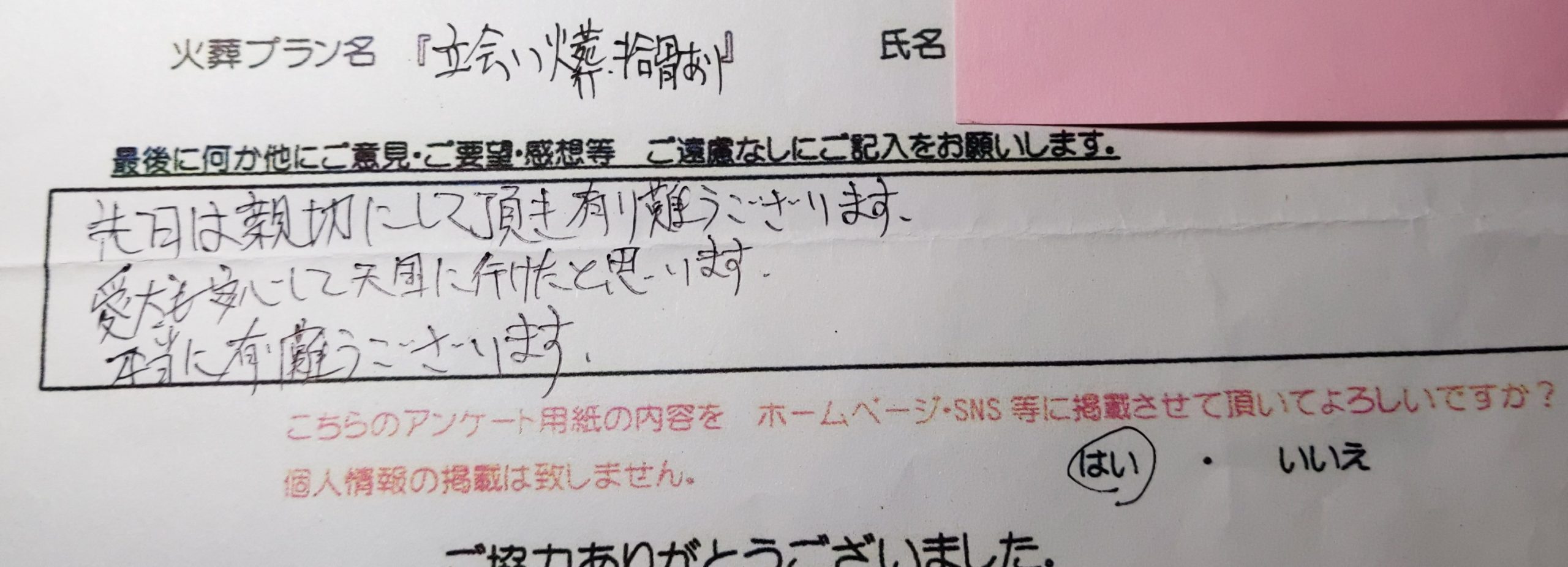 納得のいくお別れができて満足でした。 ありがとうございます。