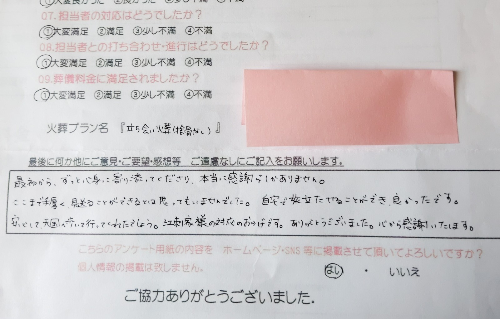 最初から、ずっと心身に寄り添ってくださり、本当に感謝でしかありません。 ここまで手厚く、見送ることができるとは思ってもいませんでした。 自宅で旅立たせることができ、良かったです。 安心して、天国へ歩いて行ってくれたでしょう。 江刺家様の対応のおかげです。 ありがとうございました。心から感謝いたします。