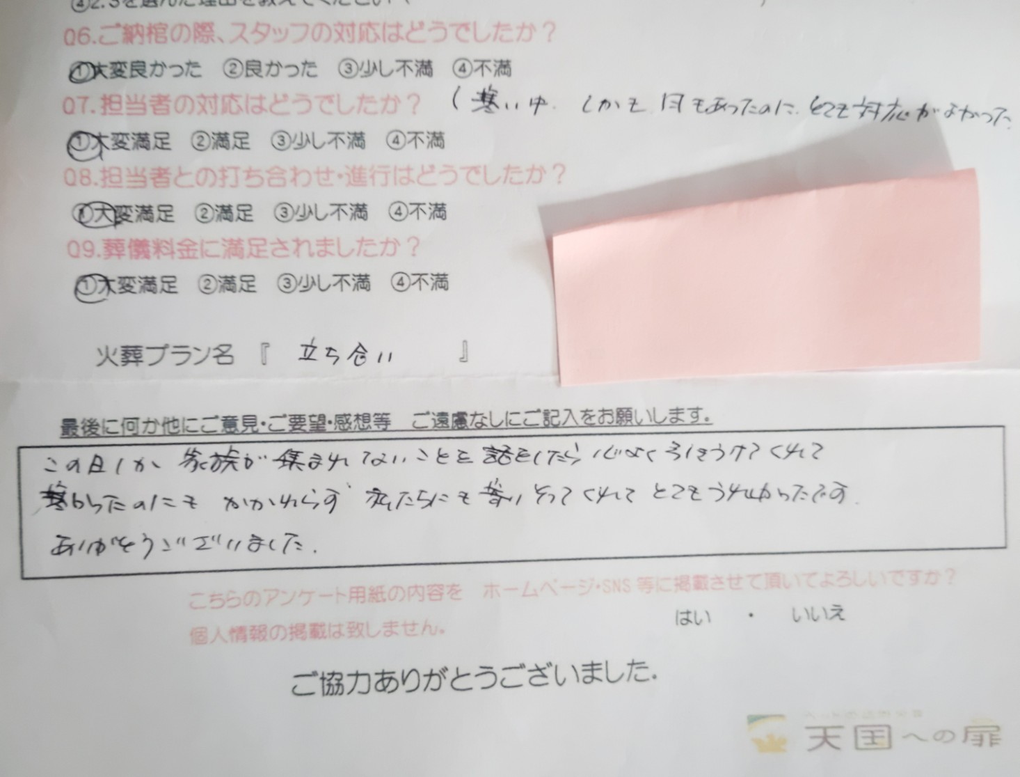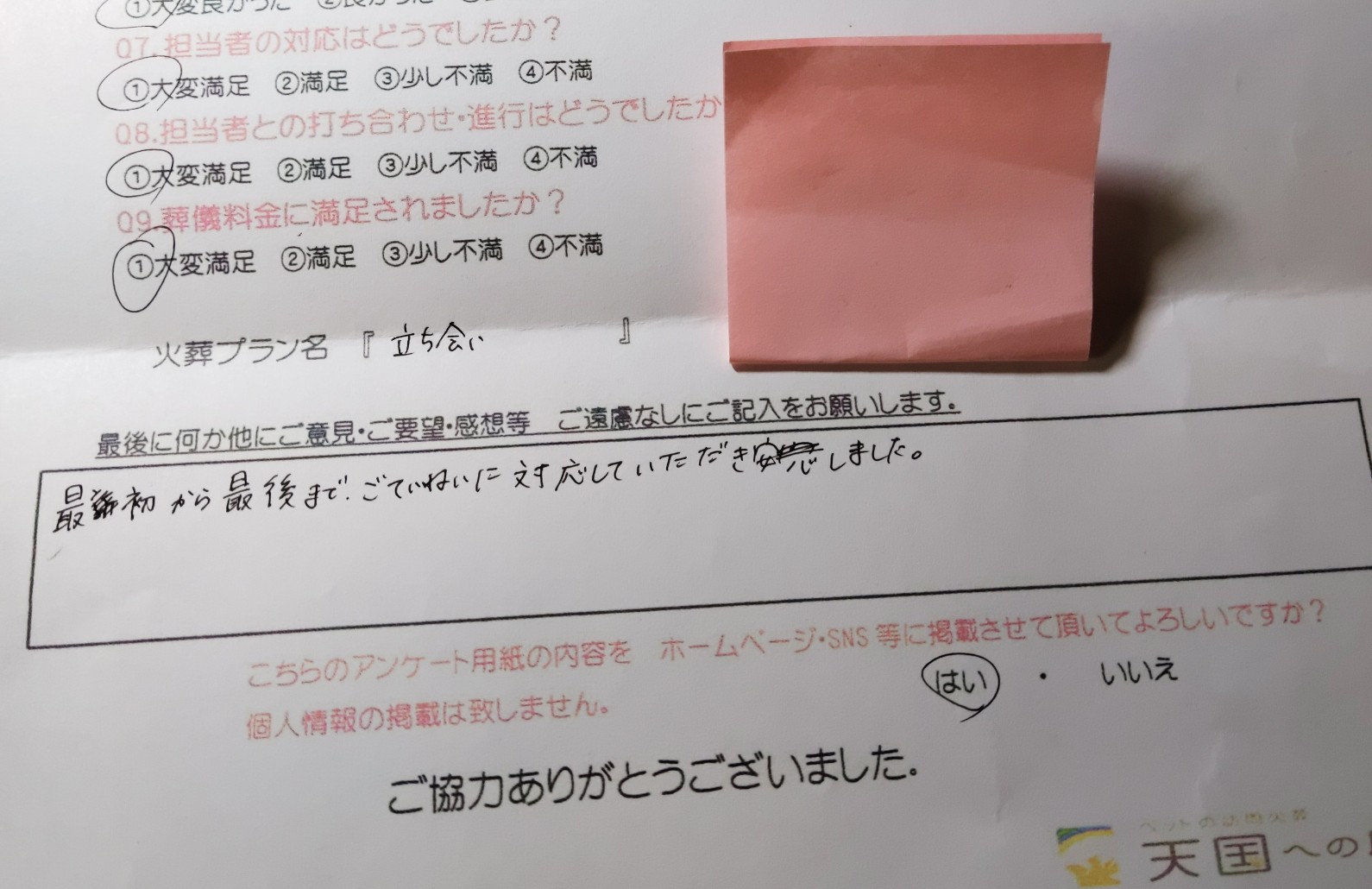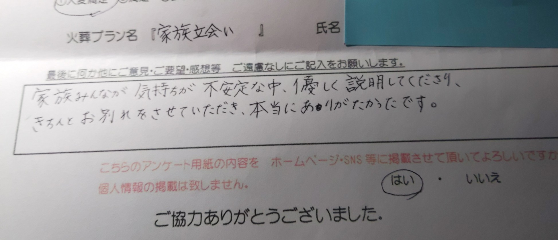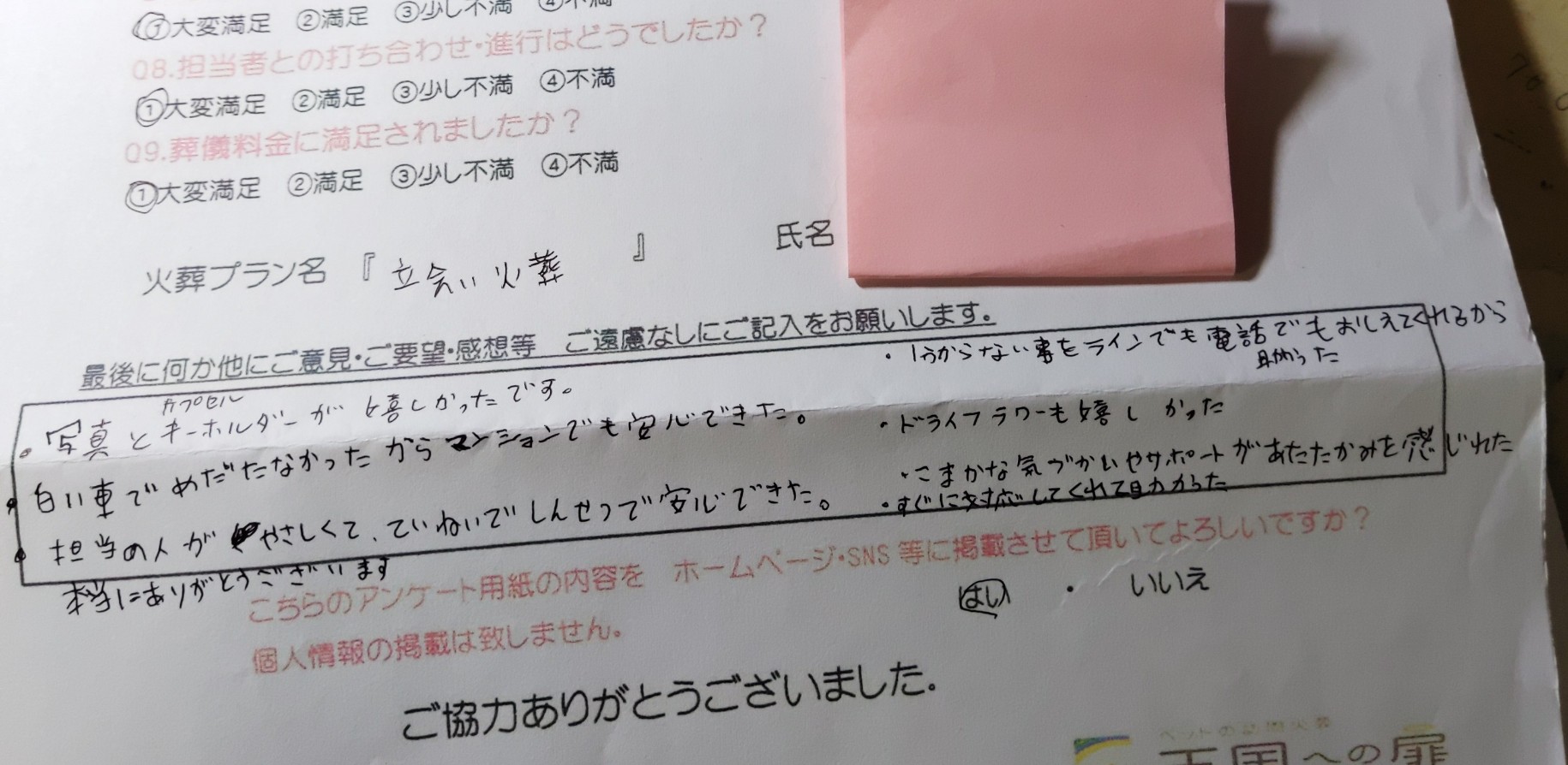 家族みんなが気持ちが不安定な中、優しく説明してくださり、きちんとお別れをさせていただき、本当にありがたかったです。