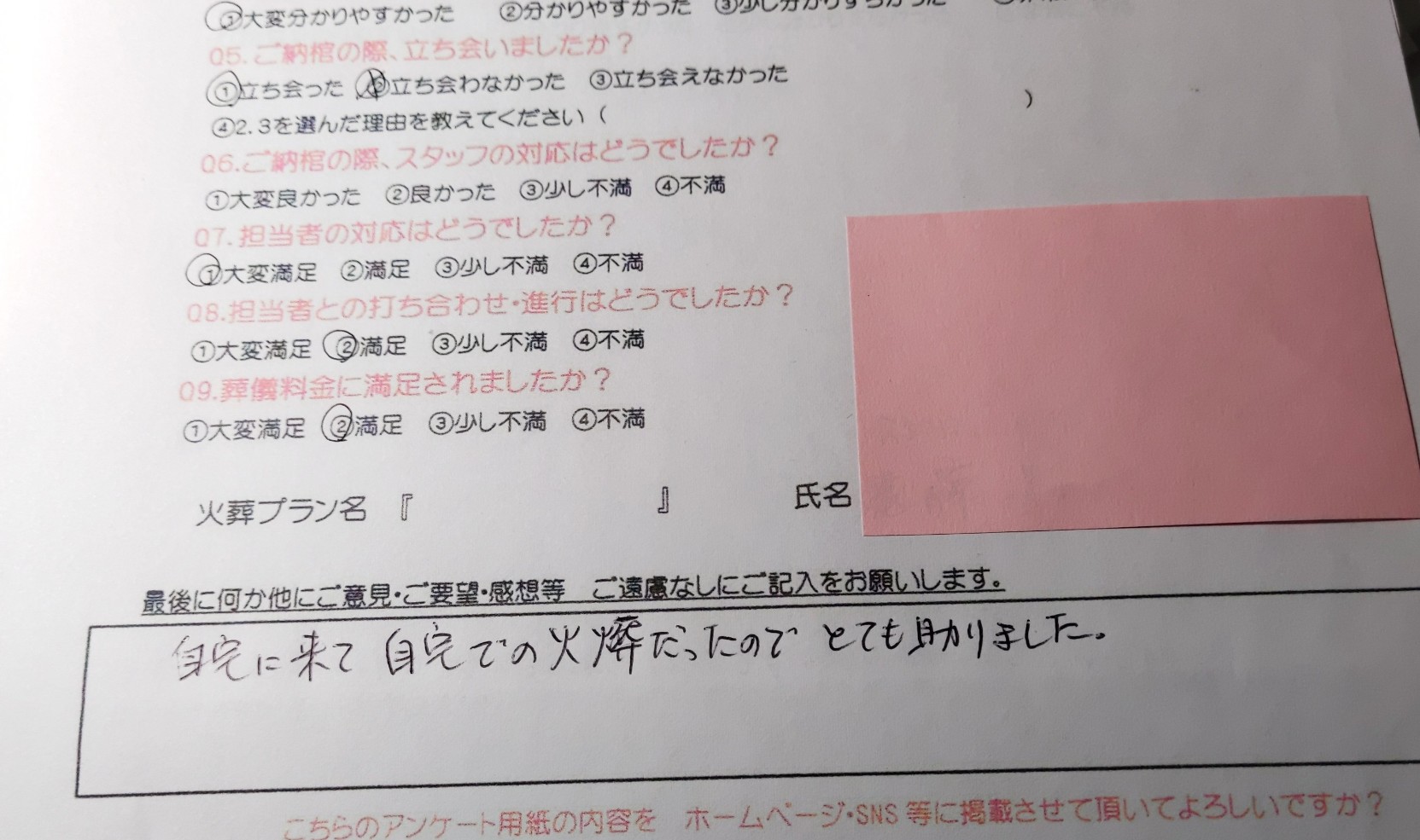 自宅に来て 自宅での火葬だったので とても助かりました。