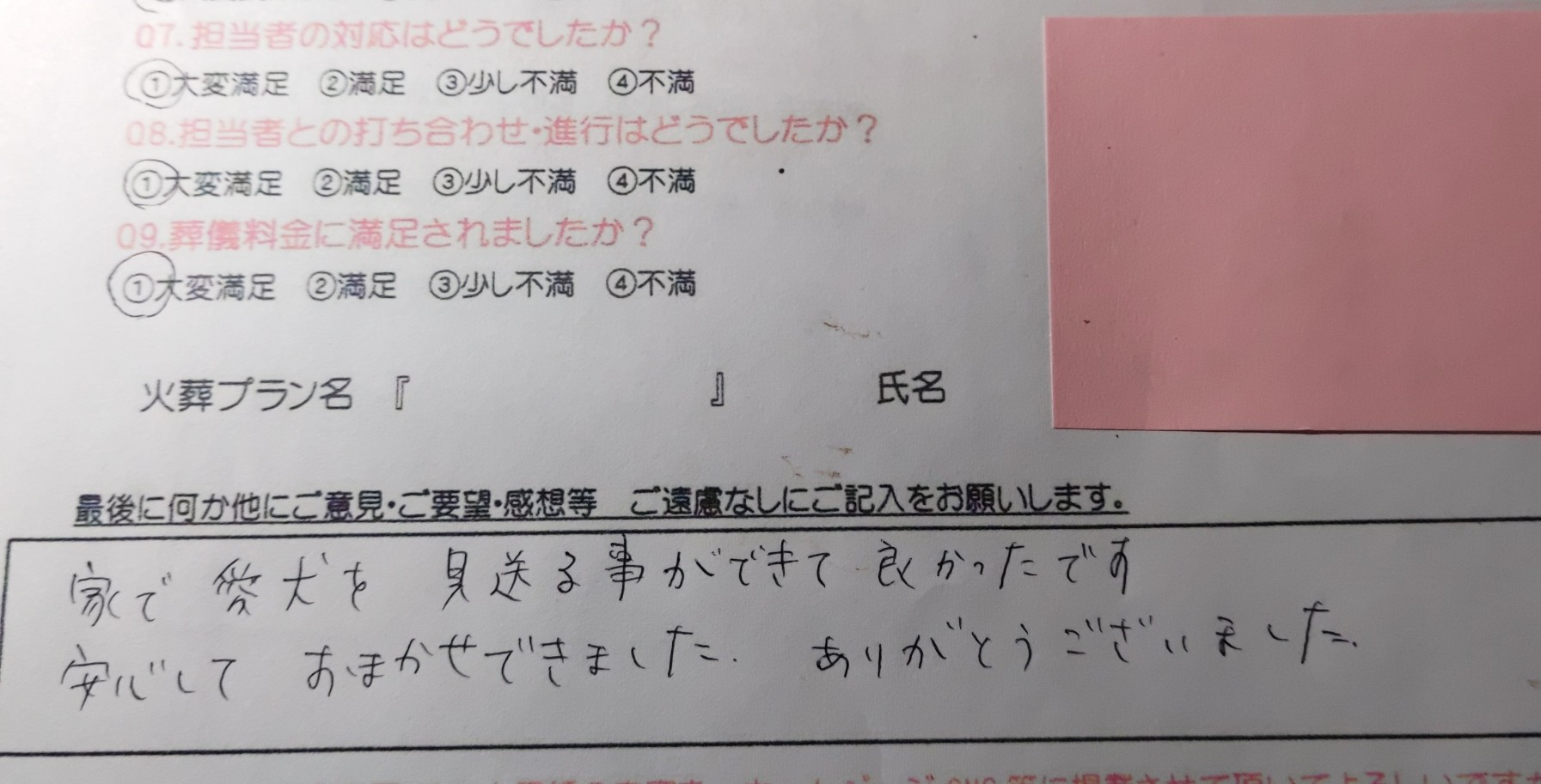 家で愛犬を見送ることができて良かったです 安心しておまかせできました ありがとうございました。