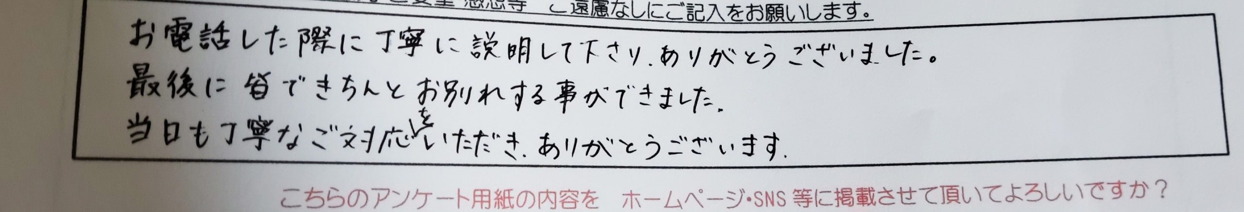 お電話した際に丁寧に説明して下さり、ありがとうございました。 最後に皆できちんとお別れする事ができました。 当日も丁寧なご対応をいただき ありがとうございます。