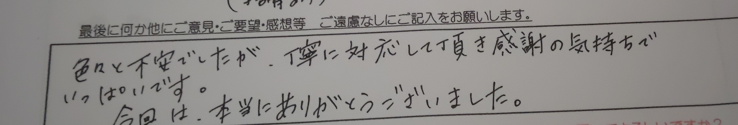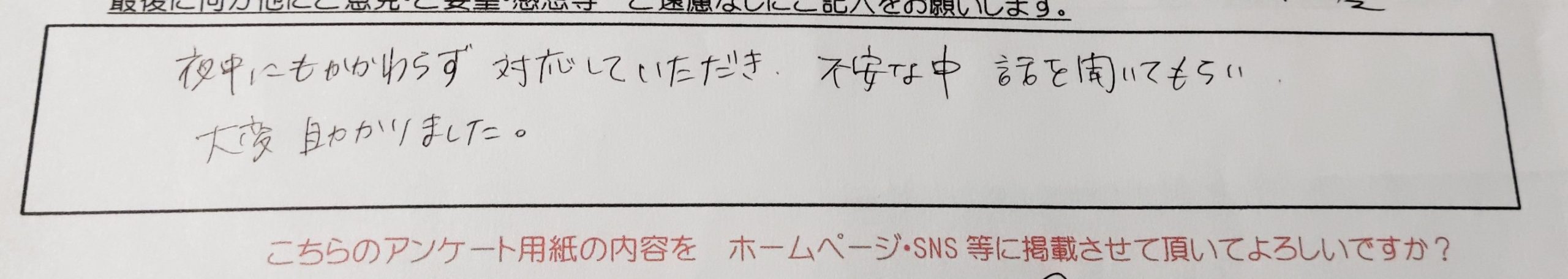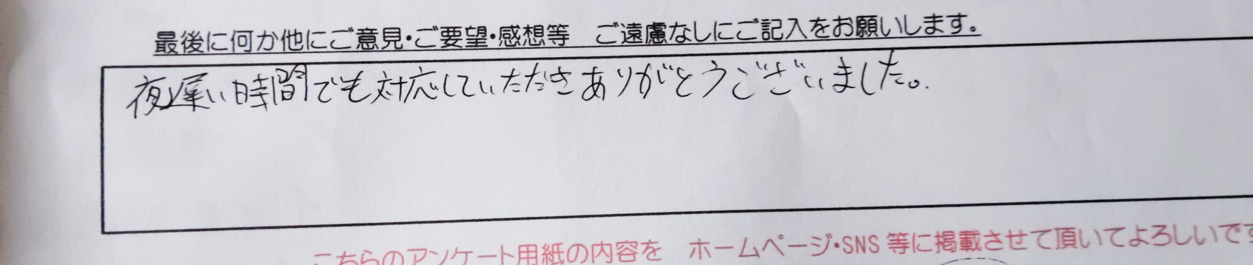 夜遅い時間でも対応していただきありがとうございました。