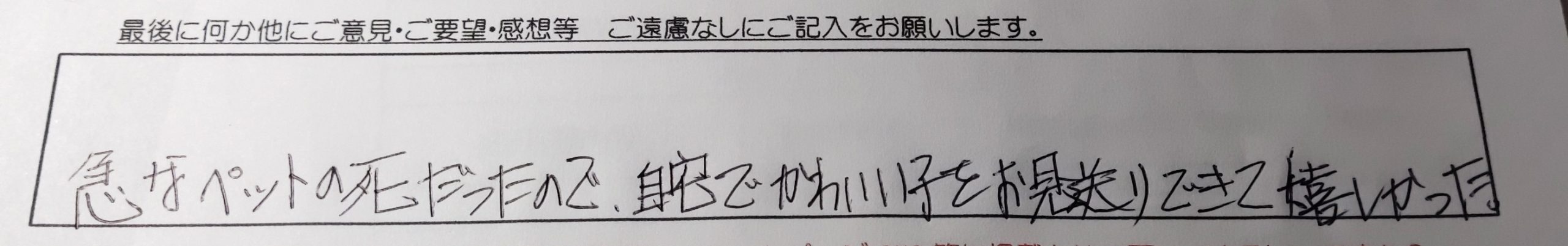 急なペットの死だったので、自宅でかわいい子をお見送りできて嬉しかった。